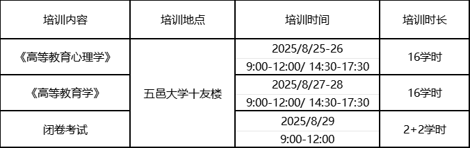 3.培訓(xùn)教材。崗前培訓(xùn)使用教材為:《高等教育新論》(盧曉中主編,高等教育出版社,2016.10)、《高等教育心理學(xué)》(張積家主編,高等教育出版社,2016.10), 培訓(xùn)教材自行購買。