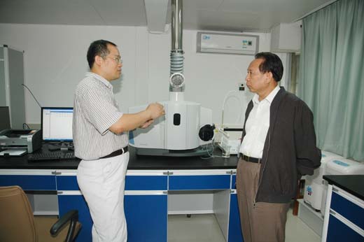 尹荔松教授向林華景副部長(右)介紹設備的性能