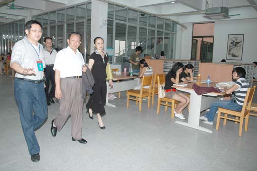 9月3日上午,在王克書記和胡社軍校長的陪同下,省委組織部副部長林華景、省教育工委副書記譚澤中等領導考察了我校分析測試中心和圖書館,分析測試中心主任尹荔松教授向來訪客人介紹了分析測試中心來自全國各著名高校的研發隊伍和先進的設備、儀器。圖書館館長謝祥云教授向來訪客人介紹了圖書館人性化的設施和安靜舒適的學習環境。考察后,來訪領導充分肯定了我校辦學23年來的成績。