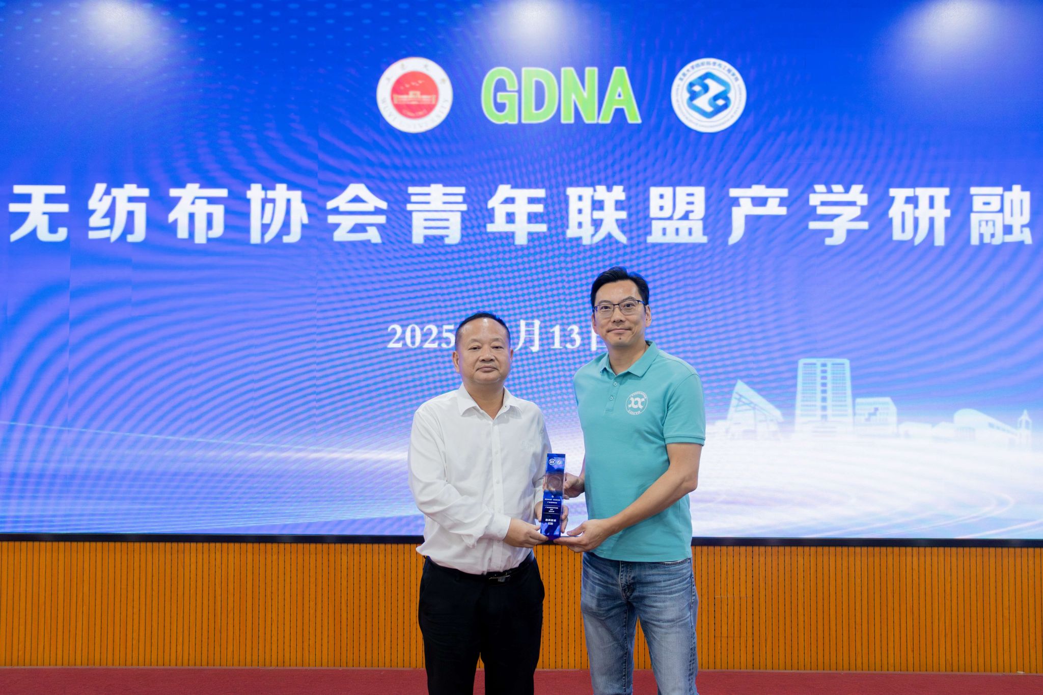 會上,廣東無紡布協會青年聯盟向學校贈送紀念品。