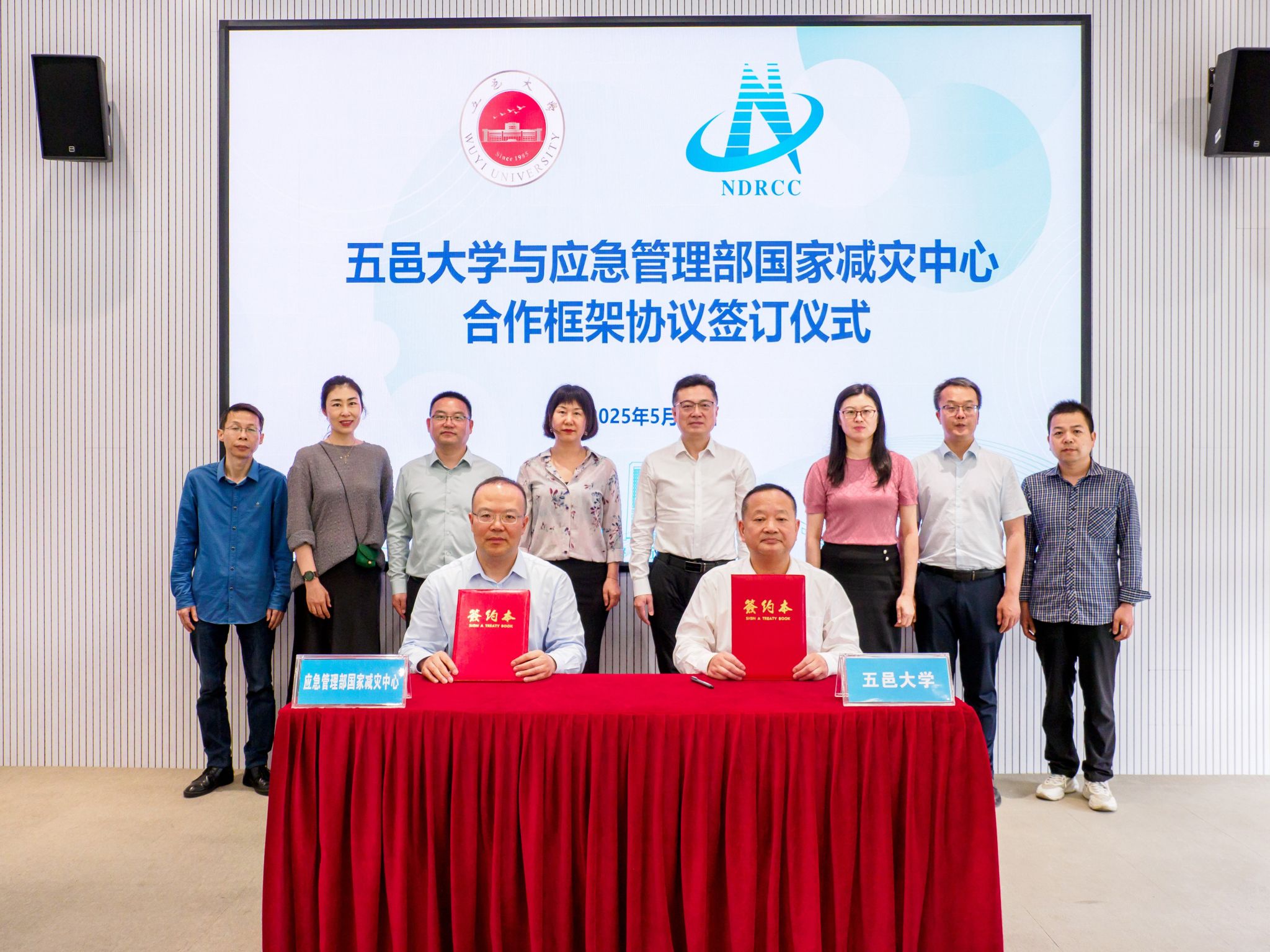 5月14日,五邑大學與應急管理部國家減災中心合作框架協議簽訂儀式在學校舉行。應急管理部國家減災中心副主任祝明,五邑大學黨委書記欒天罡、副校長董超俊出席簽約儀式。