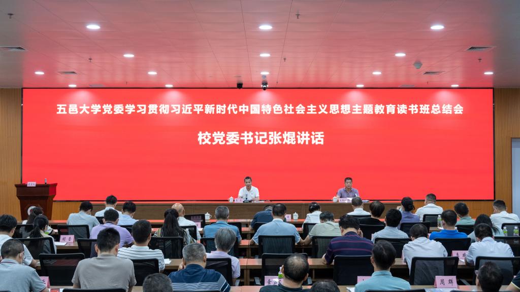 5月22日下午,五邑大學黨委召開學習貫徹習近平新時代中國特色社會主義思想主題教育讀書班總結會。校黨委書記張焜、校長張運華等校領導,校黨委理論學習中心組成員以及全體處級以上領導干部參加會議。會議由校長張運華主持。