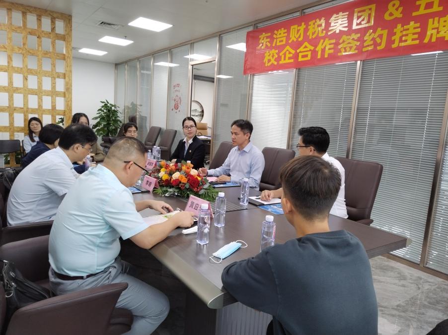 11月17日上午,學(xué)院黨委副書記黃應(yīng)忠、副院長李響、會計(jì)系專業(yè)負(fù)責(zé)人祝蘭芳及3名2023屆畢業(yè)生走訪廣東東浩財(cái)稅集團(tuán)有限公司,與公司董事長曾東明就人才培養(yǎng)、學(xué)生實(shí)習(xí)、畢業(yè)生就業(yè)、黨支部共建等方面進(jìn)行深入交流,并達(dá)成產(chǎn)學(xué)合作意向;同時(shí)推薦3名畢業(yè)生到公司就業(yè)。廣東東浩財(cái)稅集團(tuán)有限公司創(chuàng)辦于2012年,面向珠三角,在廣州、深圳、佛山、東莞設(shè)有分公司,現(xiàn)有注冊會計(jì)師、稅務(wù)師及行業(yè)人才100余人,公司規(guī)模較大,實(shí)力較強(qiáng),深受廣大學(xué)生喜愛。