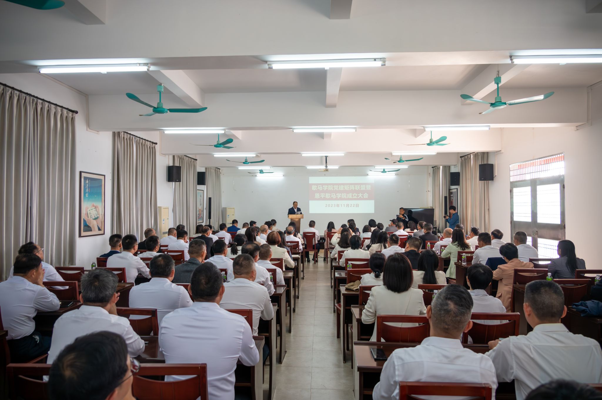 為深入貫徹落實(shí)省委“1310”具體部署,扎實(shí)推進(jìn)百校聯(lián)百縣助力“百千萬工程”,按照“縣域所需,高校所能”的原則,充分發(fā)揮五邑大學(xué)資源力量優(yōu)勢,對恩平優(yōu)秀文化進(jìn)一步挖掘、整理、活化與利用,推進(jìn)文旅和教育深度融合,為助力恩平推進(jìn)“百千萬工程”注入新動能,11月22日,由五邑大學(xué)與恩平市共建的恩平歇馬學(xué)院,由五邑大學(xué)經(jīng)濟(jì)管理學(xué)院黨委與江門市、恩平市有關(guān)單位黨組織聯(lián)合成立的歇馬學(xué)院黨建矩陣聯(lián)盟在恩平市圣堂鎮(zhèn)歇馬村揭牌成立。恩平市副市長董德順、副市長趙超兒,江門市煙草專賣局負(fù)責(zé)人,恩平市教育局領(lǐng)導(dǎo)班子成員,恩平市委組織部、市委兩新工委、恩平市委改革辦負(fù)責(zé)人,“雙百行動”駐縣服務(wù)隊(duì)隊(duì)長、副隊(duì)長,文化研究專家,恩平市教育局機(jī)關(guān)干部以及數(shù)十位恩平市中小學(xué)校黨組書記、校長,圣堂鎮(zhèn)負(fù)責(zé)人,歇馬村負(fù)責(zé)人,恩平歇馬舉人村旅游區(qū)有限公司負(fù)責(zé)人,五邑大學(xué)黨委宣傳部、經(jīng)濟(jì)管理學(xué)院有關(guān)負(fù)責(zé)人,媒體界代表等100余人參加活動。成立大會由五邑大學(xué)經(jīng)濟(jì)管理學(xué)院副教授、恩平歇馬學(xué)院院長伍鋒主持。