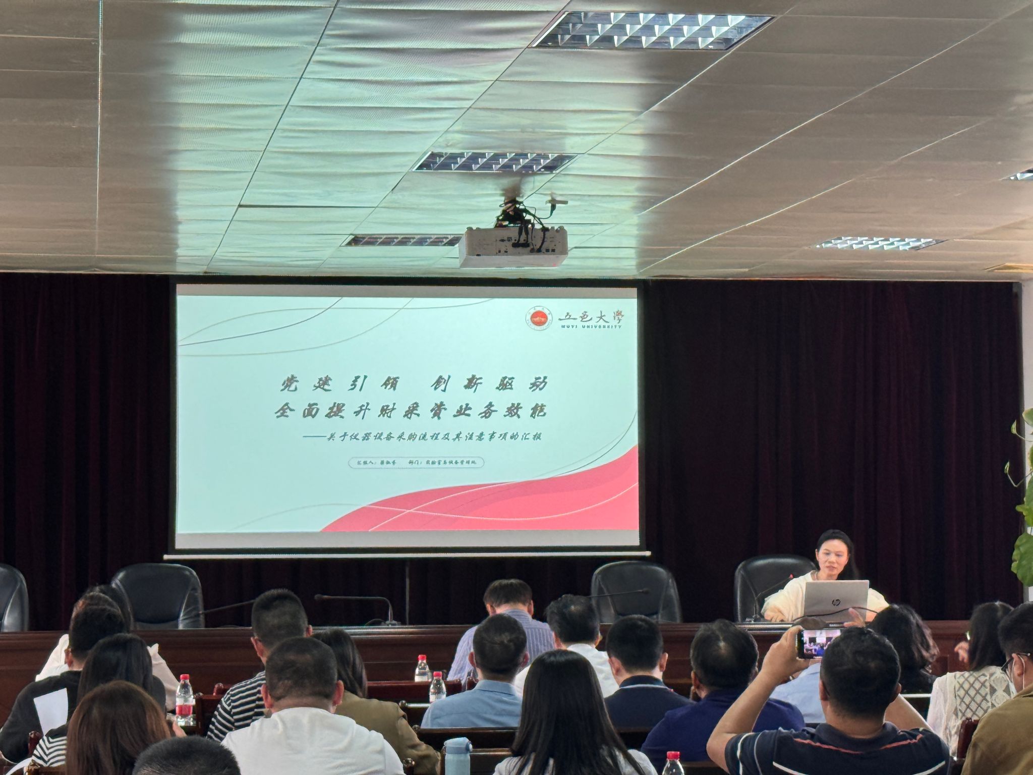 為進一步提高建設項目效率和質量,強化采購管理的規范性,并增強采購管理制度的執行力,提升采購相關工作人員的業務水平,實驗室與設備管理處聯合財務處、采購招標中心于4月10日下午在南主樓七樓大會議室舉辦了“黨建引領,創新驅動——全面提升財采資業務效能”第二期培訓活動。實驗室與設備管理處全體工作人員,相關學院分管實驗室建設項目的副院長、實驗室建設項目負責人、各單位有采購任務的工作人員,共57人參加了活動。