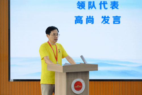 開營儀式上,五邑大學黨委書記欒天罡向領隊和營員代表授旗。