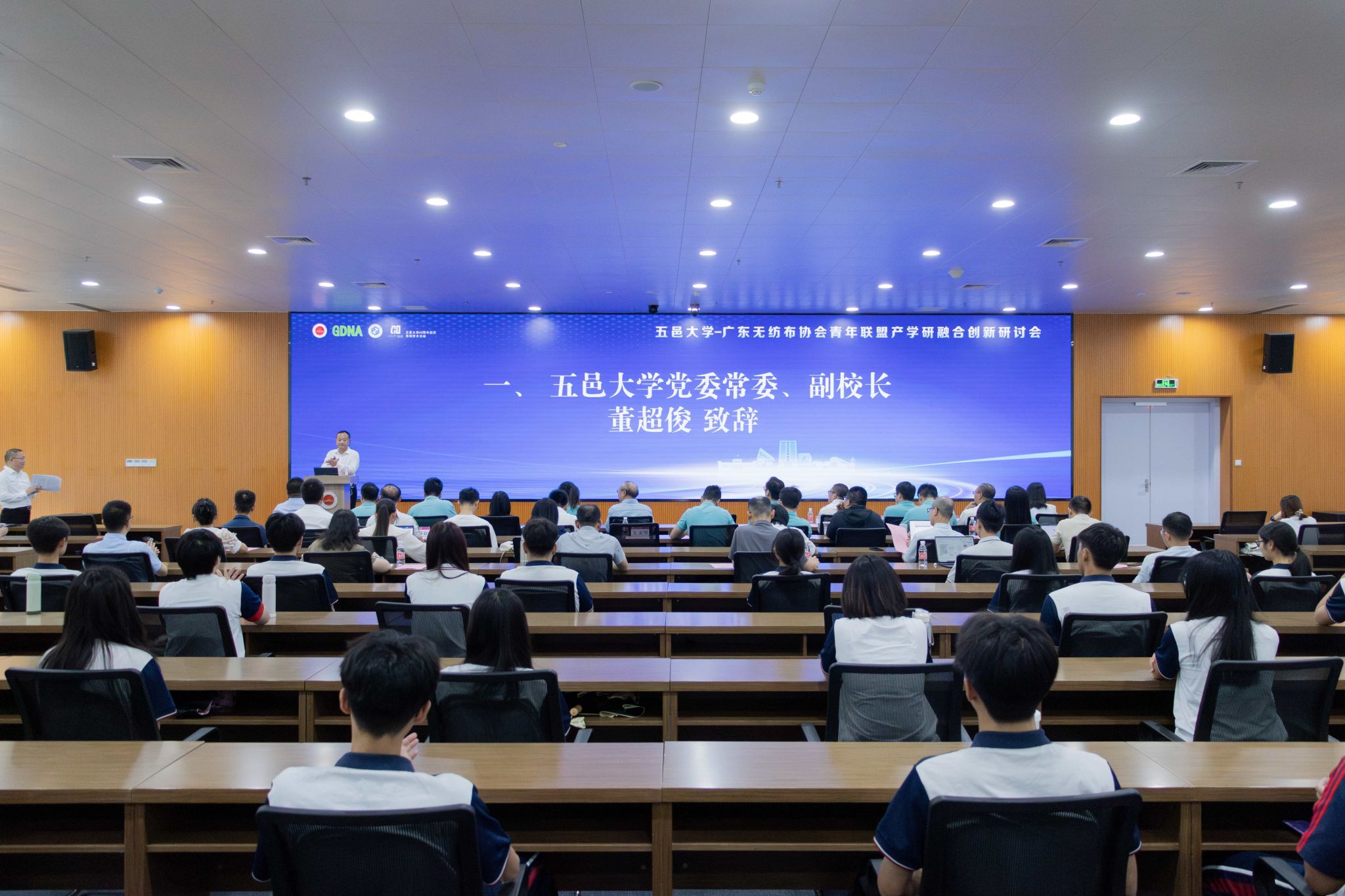 5月13日,五邑大學—廣東無紡布協會青年聯盟產學研融合創新研討會在策文商學院大樓副樓204報告廳舉辦。...